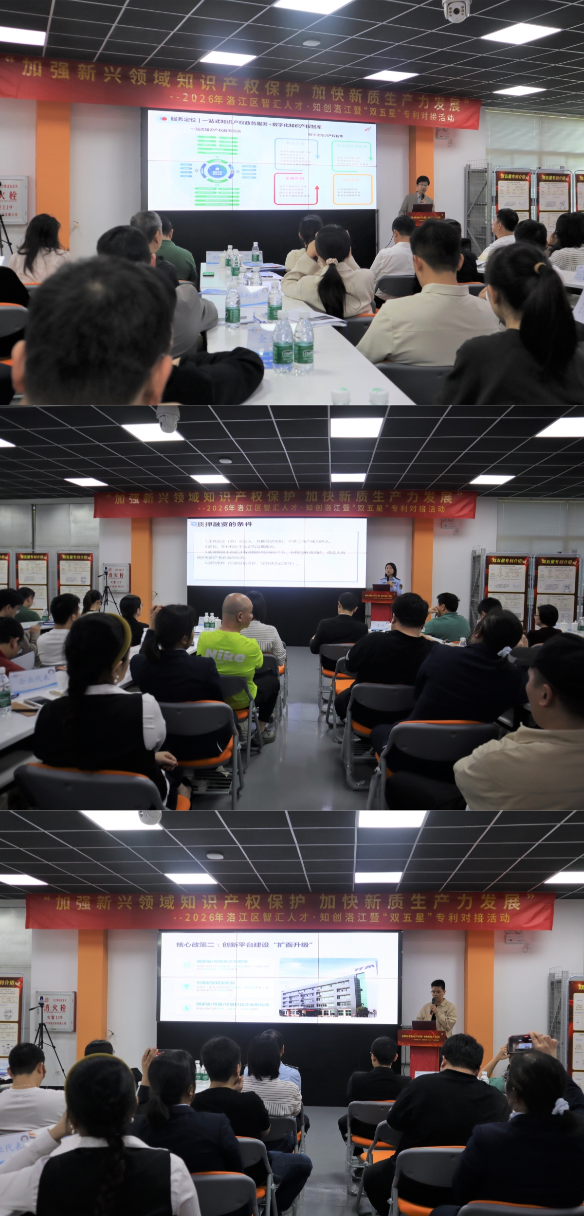 活动现场,泉州市知识产权保护中心、洛江区市场监督管理局、洛江区科技局依次作知识产权运营服务平台功能宣介、惠企政策解读。