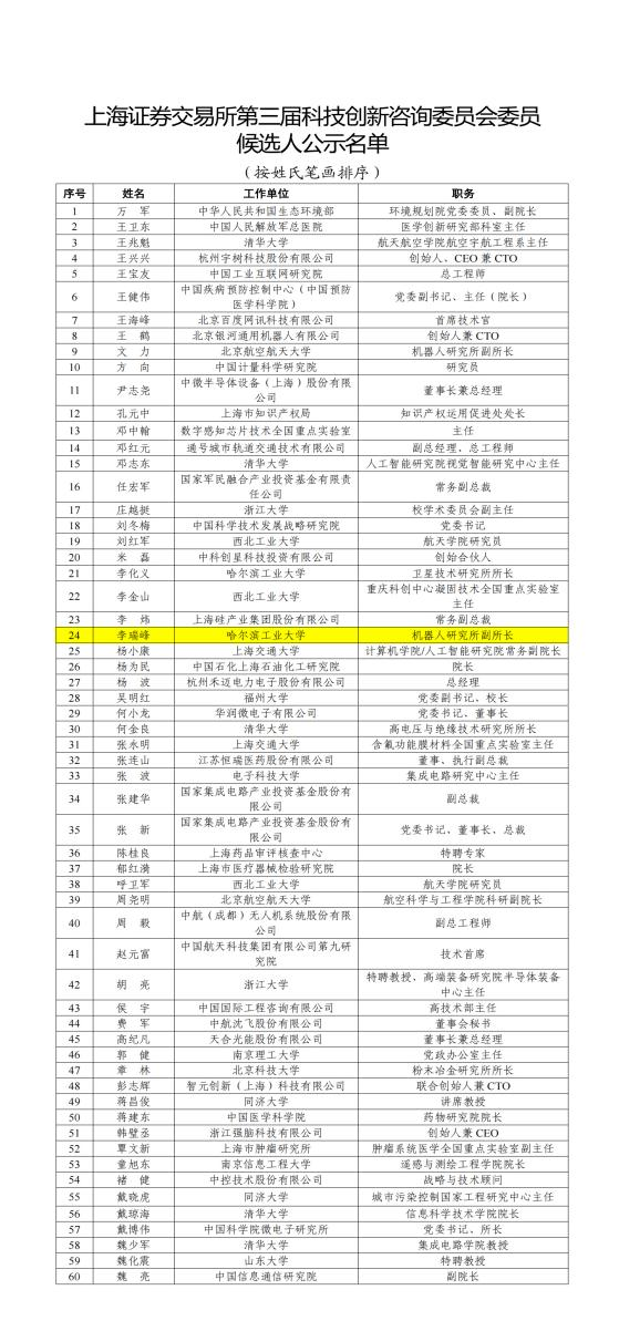 上交所第三届科创咨询委委员候选人揭晓,我院院长李瑞峰在列